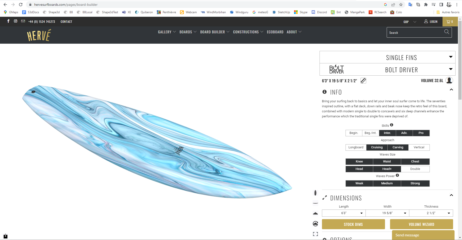 The Shape3d Board Builder is a web service that will allow your customers to customize their boards on your website: length, width, thickness, fin system, logos’ position, art work… And watch the board in 3D before ordering it..